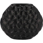 Bloemenvaas rond model - Boa - zwart - veren/schub relief - 23 x 23 x 25 cm - modern -