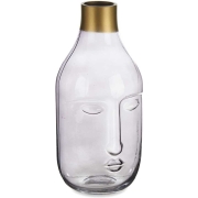 Bloemenvaas Crystal Face, gemaakt van luxe decoratie glas in de kleur grijs transparant. Moderne vorm, met gouden top en een gezichtje in het glas. Formaat: 11 x 24 cm. Geschikt voor bloemen,…