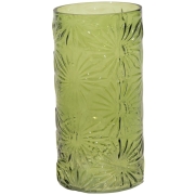 Mega Collections Bloemenvaas Debby - groen - glas - bloem relief - 15 x 35 cm -