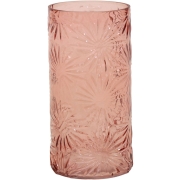 Mega Collections Bloemenvaas Debby - roze - glas - bloem relief - 15 x 35 cm -