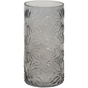 Mega Collections Bloemenvaas Debby - grijs - glas - bloem relief - 15 x 30 cm -