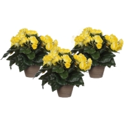 3x stuks gele Begonia kunstplant 30 cm in grijze pot -