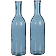 2x Fles van glas in de kleur blauw. Deze fles heeft een hoogte van 50 cm en de breedte van de bodem is 15 cm. De diameter van de flesopening is ca. 5 cm. Deze sierfles is daarom geschikt voor 2…