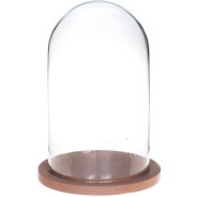Glazen decoratie stolp op houten plateau 14 x 25 cm. Decoratieve glazen stolp van helder glas met afgeronde bovenkant op een houten plateau. Presenteer uw mooiste snuisterijen onder deze…