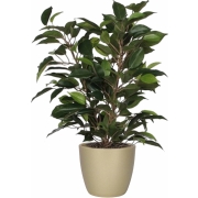 Groene ficus kunstplant 40 cm met plantenpot van keramiek in de kleur parelgoud D13.5 en H12.5 cm. Zeer realistisch uitziende, onderhoudsvrije/onderhoudsarme kunstplant. Materiaal: kunststof/…