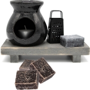 Amberblokjes/geurblokjes cadeauset 4-delig. Deze set is een feestje om cadeau te geven en te krijgen, en bestaat uit een presenteer plankje, een geurbrander, mini rasp en een amberblokje in de…