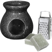 Deze set bestaat uit een geurbrander, mini rasp en 3x stuks amberblokjes/geurblokjes in de geur, dennen. Deze geur is fris en hars/houtachtig. De geurbrander is van keramiek in de kleur antraciet…