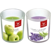 Geurkaarsen set van 4x stuks in glazen kaarsenhouder appel en lavendel 25 branduren. U ontvangt van beide geuren 2x stuks. Formaat per kaars: diameter 7,3 cm, hoogte 8,3 cm. appel variant geur is…