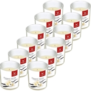 Trend Candles Geurkaars - 12x - in glas - Vanille aroma - 25 branduren - 7 x 8 cm -