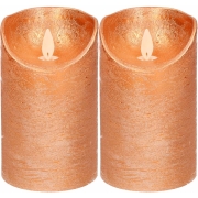 Led kaars/stompkaars - 2x - koper - H12,5 x D7,5 cm - wax - warm wit licht - bewegende vlam -