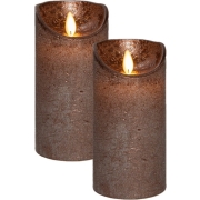 Led kaars/stompkaars - 2x st - brons - H15 x D7,5 cm -wax - warm wit licht -bewegende vlam -