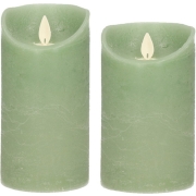Set van 2x stuks Jade Groen Led kaarsen met bewegende vlam. De kaarsen set bestaat uit 3 formaten: 12.5 en 15 cm en zijn 7,5 cm breed. De stompkaarsen met bewegende vlam verlichting geven de…