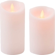 Set van 2x stuks Antiek Roze Led kaarsen met bewegende vlam. De kaarsen set bestaat uit 2 formaten: 12.5 en 15 cm en zijn 7,5 cm breed. De stompkaarsen met bewegende vlam verlichting geven de…