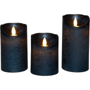 Stompkaars rustiek wax bewegende vlam 10/12,5/15x7,5 cm metallic blauw s/3 - Annas collection