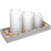 Houten dienblad met 3 LED kaarsen in de kleur zilver 14 x 40 cm -