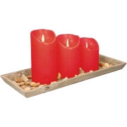 Dienblad van hout met 3 LED kaarsen in de kleur rood 39 x 15 cm -