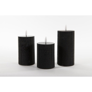 LED kaarsen/stompkaarsen set - 3x stuks - zwart - ribbel -