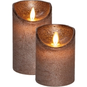 LED kaarsen/stompkaarsen - 2x st - brons - D7,5 cm - wax - warm wit - bewegende vlam -