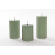 LED kaarsen/stompkaarsen set - 3x stuks - jade groen - ribbel -