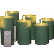 LED Stompkaarsen met afstandsbediening - 6x - jade groen - 10/12.5/15 cm -
