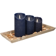 Houten dienblad met 3 LED kaarsen in de kleur donkerblauw 39 x 15 cm -