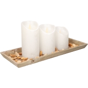 Houten dienblad met steentjes en 3 LED kaarsen in het wit 39 x 15 cm -
