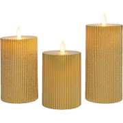 Anna's Collection LED kaarsen/stompkaarsen set - 3x st - goud - ribbel - afstandsbediening -