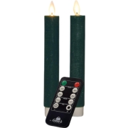 Dinerkaars wax led bewegende vlam op batterij met afstandsbediening 2 stuks h18 cm antiek groen - Annas collection