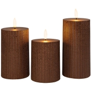 Stompkaars-LED ribbel wax h12,5 cm brons s3 - Annas collection