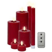 LED kaarsen set - wax - 7-dlg - rood - dinerkaarsen/stompkaarsen/theelichten - afstandsbediening -