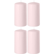4x Lichtroze cilinderkaarsen/stompkaarsen 6 x 15 cm 58 branduren -