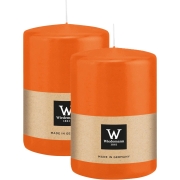 Cilinderkaars/stompkaars groot - 2x - oranje - 15 x 10 cm - 113 branduren -