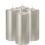 Cilinderkaars/stompkaars - 4x - metallic zilver - 15 x 7 cm - 63 branduren -