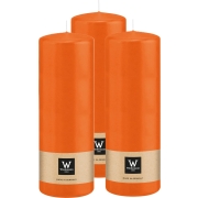 Cilinderkaars/stompkaars - 3x - oranje - 20 x 7 cm - 103 branduren -