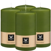 Cilinderkaars/stompkaars - 4x - olijfgroen - 13 x 7 cm - 52 branduren -