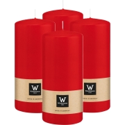 Cilinderkaars/stompkaars - 4x - rood - 15 x 7 cm - 63 branduren -