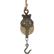 Mooie industriële katrol met een stevige haak, gemaakt van hout en metaal. Deze katrol wordt geleverd met een stevig bevestigingstouw. In totaal is de katrol +-90cm lang en heeft een diameter van…