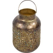 Metalen lantaarn/windlicht goud grof 15 x 23 cm. Deze mooie lantaarn van metaal heeft een grof gaatjes patroon en vintage gouden afwerking voor een antieke uitstraling. De lantaarn kan worden…