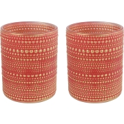 Set van 2x stuks luxe theelichthouder of kaarsenhouder voor waxinelichtjes van licht doorschijnend relief glas in de kleuren rood/goud. Afmetingen: D10 x H12 cm. Plaats meerdere formaten en of…