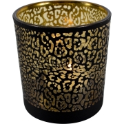 Theelichthouders/kaarsenhouders - set van 2x - zwart/goud - keramiek -