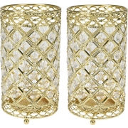 Luxe theelichthouder/kaarsenhouder - 2x - goud - keramiek - D15 x H13.5 cm -