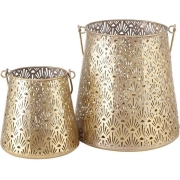 Set van 2x metalen lantaarns/windlichten goud 23 en 32 cm. Deze mooie lantaarn van metaal heeft een grof gaatjes patroon en vintage gouden afwerking voor een antieke uitstraling. De lantaarn kan…