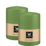 Cilinderkaars/stompkaars groot - 2x - olijfgroen - 15 x 10 cm - 113 branduren -