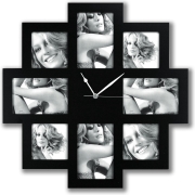 De houten wandklok Trieste zwart kan worden voorzien van 8 foto’s 10x15 voor uw leukste herinneringen. De klok heeft een afmeting van 52 x 52 cm en werkt op een batterij…
