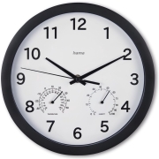 Hama Wandklok Malta met Thermo-Hygrometer Tikt Niet 25 cm Zwart/Wit