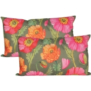 Sierkussen voor binnen en buiten - 6x - klaprozen bloemen - groen/roze - 60 x 60 cm - tuinkussen -