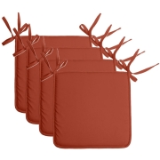 4x stoelkussens Nelson, voor binnen stoelen, vierkant, in de kleur terracotta met afmetingen van 38 x 38 x 3 cm. Makkelijk vast te maken met aangehechte touwtjessluiting. Materiaal: 100% polyester…