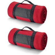 Fleece dekens/plaids met afneembaar handvat - 10x - Rood - 150 x 120 cm - Fleecedekens -