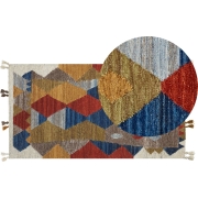 Beliani-ARZAKAN-Kelim vloerkleed-Multicolor|Blauw-80 x 150 cm-Wol