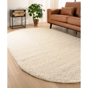 Tapeso Rond vloerkleed hoogpolig effen Classic - crème - 150 cm rond